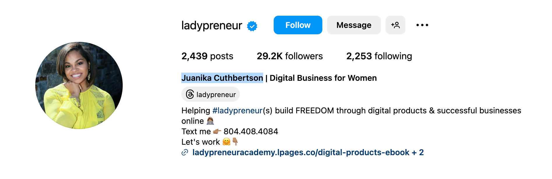 1. Juanika Cuthbertson (@ladypreneur)